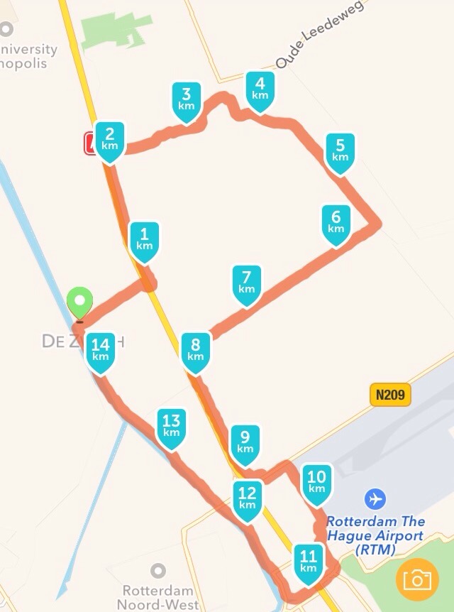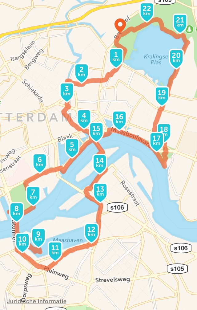 Vandaag de laatste training met Pieke. Rondje Rotterdam , begonnen in Kralingen, richting centrum, de Maas onderdoor via de Maastunnel, ruim stuk over de kop van zuid, daarna via de Willemsbrug de Maas weer overgestoken en vervolgens weer naar Kralingen, afgesloten met een rondje om de Kralingse plas. Stad liep zwaar, veel verkeerslichten en zoeken naar bordjes. Daarna heerlijk door natuur gelopen. 22,7 km in 3,5 uur. Het was zonnig! (Die terrasjes die we passeerden waren best aanlokkelijk 😉 )