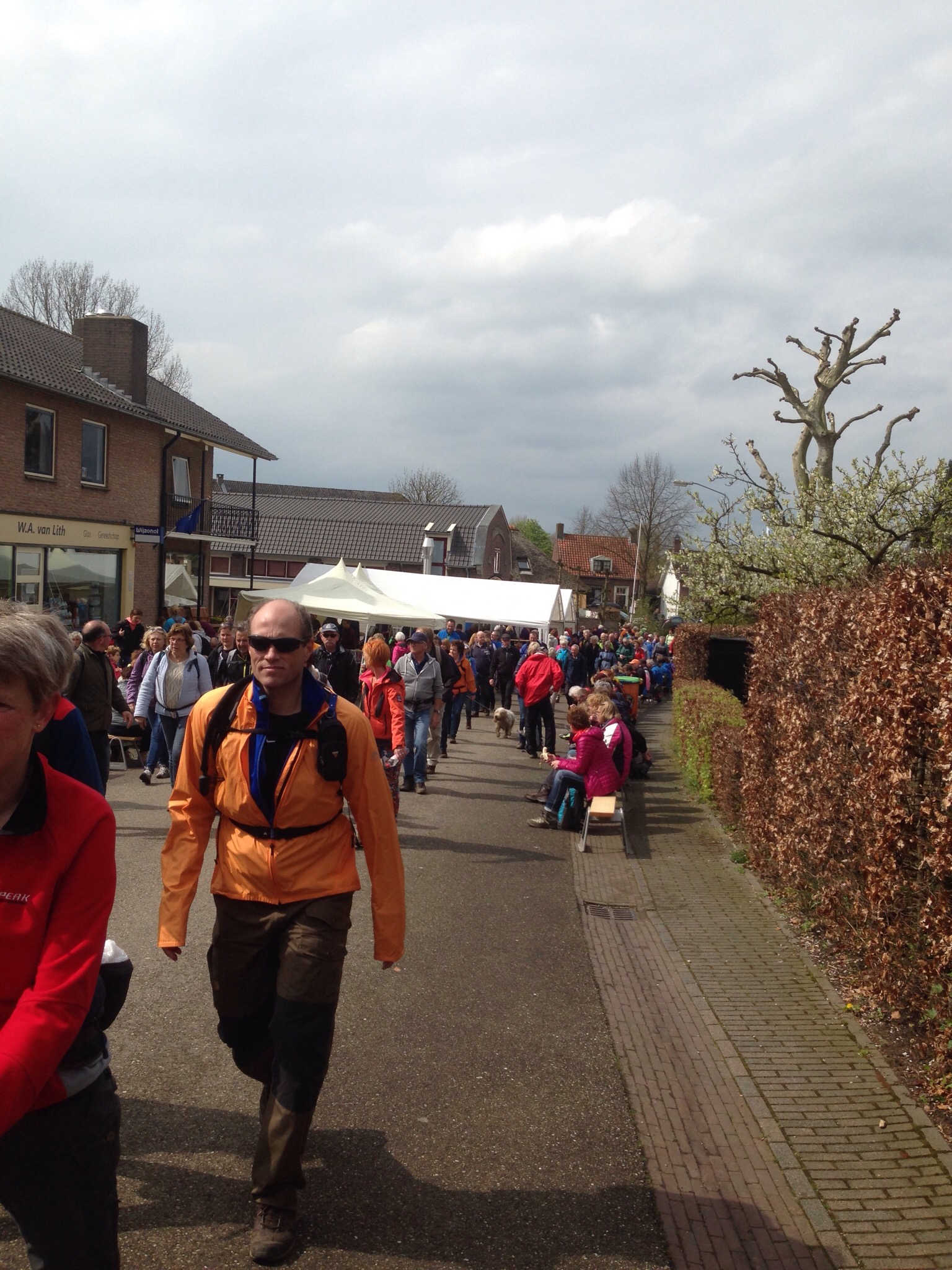 Vandaag ‘De Bloesemtocht’ , bij de 4 daagse lopers wel bekend als ultieme tocht. Je kijkt of je looptempo goed is, calculeert pauzes in en loopt in een grote menigte.