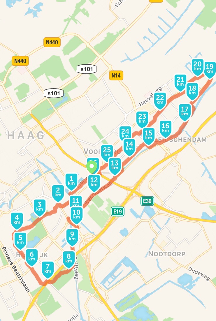 Qua kilometers ‘in de benen’ zit het wel goed. Laatst de bloesemtocht gewandeld zonder problemen en de wekelijkse rondes om de continuïteit te behouden. Vanavond / vannacht toch maar eens wat anders geprobeerd. Nachtwandelen.. vertrokken om 22:15 in de schemer en vervolgens het langzaam donker zien worden. We merkten dat pijltjes zoeken in het donker soms erg lastig was, maar gelukkig hadden we de wandelroute app om zo nu en dan eens te controleren of we nog goed liepen. Klein stukje bos, wat nog in de schemer was.. was al pik donker. Gelukkig liepen we samen en waren we er snel doorheen. Voor de rest allemaal bebouwde kom (wat ook al bij daglicht een ramp kan zijn qua pijlen). De geplande 25 km vlogen in rap tempo voorbij. Door een kleine omleiding een extra kilometer gelopen: in totaal 26,1 km en dat in een tijd van 4 uur. Mooie wandeling over wegen die overdags erg druk met verkeer zijn, nu in alle rust. Extra leuk was het om te zien waar Pieke haar jeugd heeft doorgebracht, straks met de 80 ziet zij de mijne. Op naar de volgende, mogelijk gewoon weer bij daglicht :).