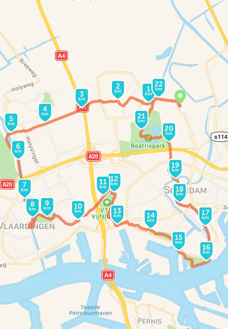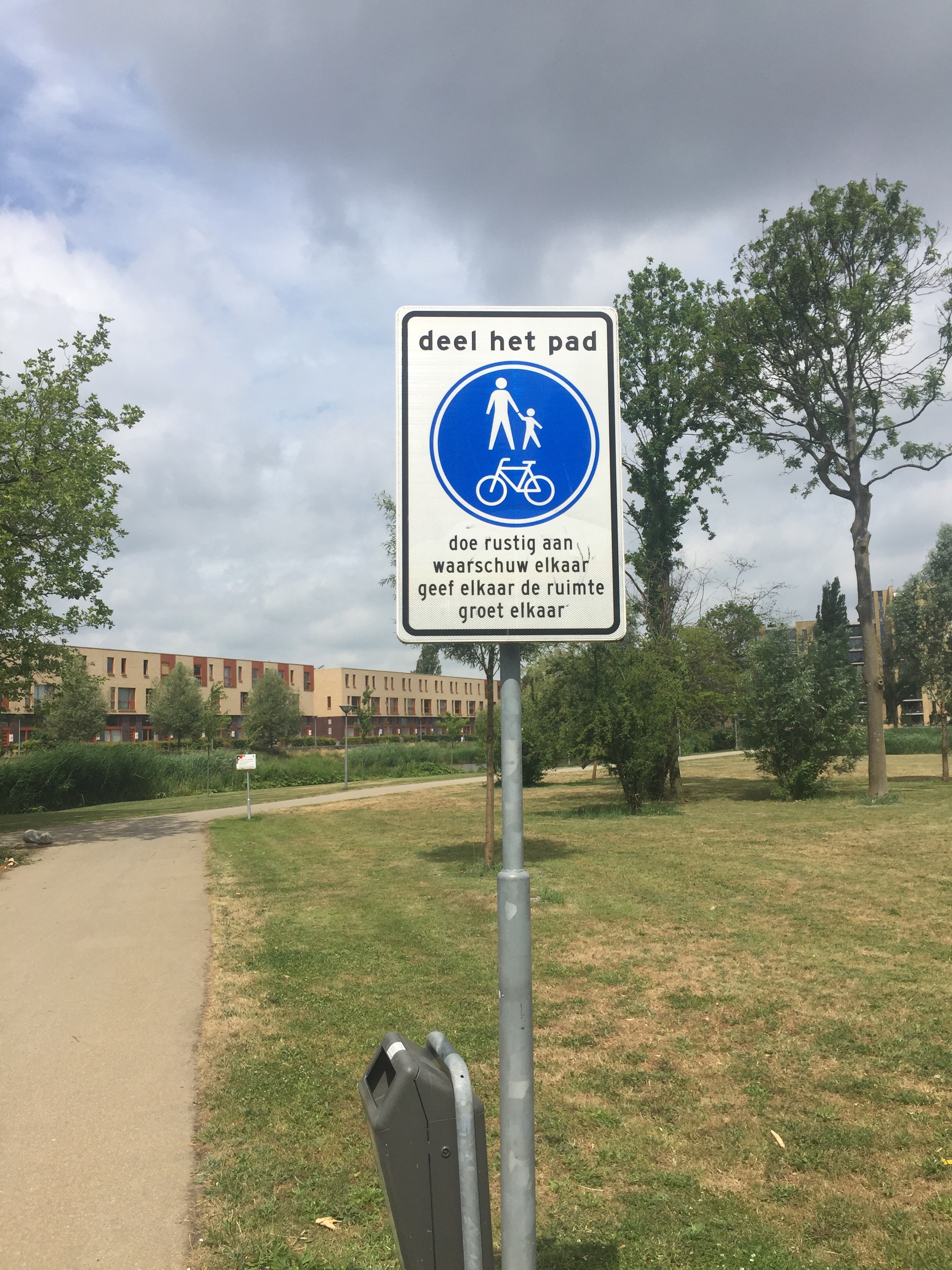 Dit maal door Schiedam en Vlaardingen. Met daarbij een deel door de havens, en in de verte Rotterdam. Een gebied wat we nog niet eerder hebben gelopen, met prachtige stukken natuur. Deze tocht was ook als optie voor de nachtwandeling gemaakt, maar blij dat we deze bij dag hebben gelopen. Ondanks dat het niet op de kaart stond, liepen we veel door parken. Wel een leuk / vriendelijk verkeersbord gezien wat ik nog niet eerder ben tegengekomen. Onderweg echte kunst tegengekomen (fietsen) en even oponthoud door een brug die net voor onze voeten open ging.