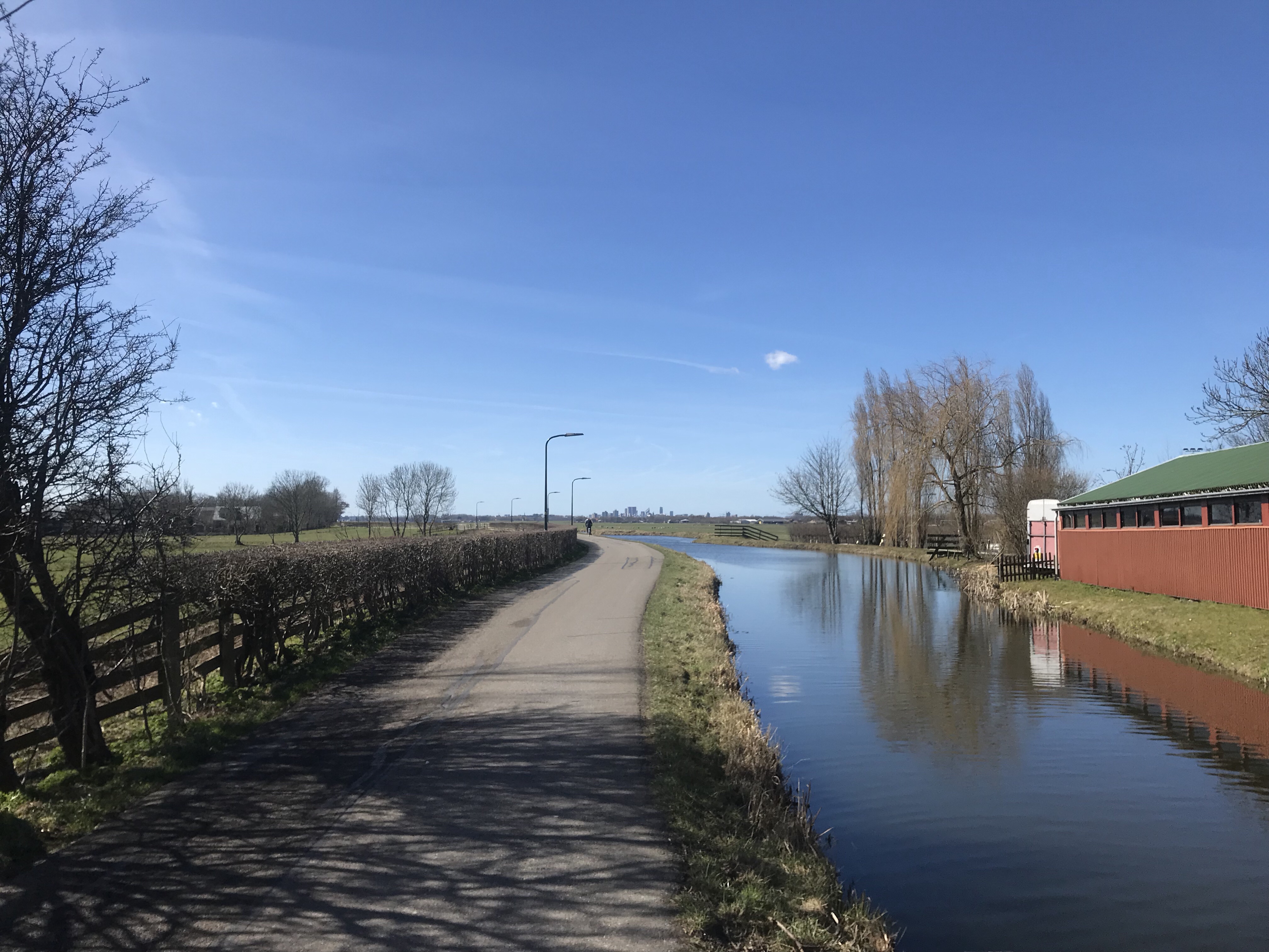 Wat een heerlijke dag! Was eerst van plan om rondje Noord AA te doen, maar Sas had er wat minder zin in. Dus halverwege terug naar huis en weer op pad. Geen route voorbereid maar gewoon een stukje lopen. Op kruispunten steeds de volgende richting bepaald. Aangezien ik altijd op route loop is dit ook wel eens wat anders. Eerst maar Stompwijk en via het buitenpark terug naar de stad. Rondje van 15 km.